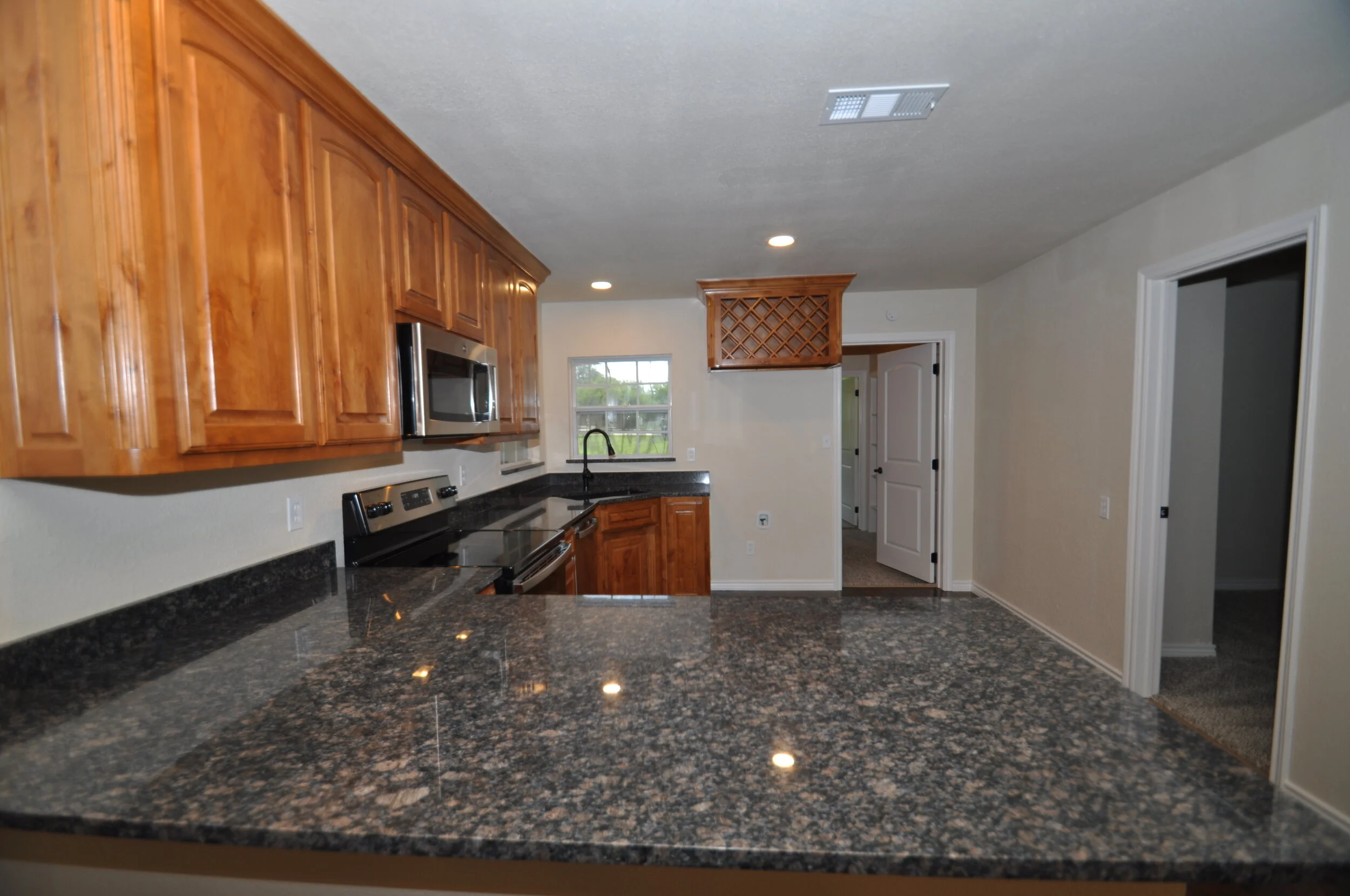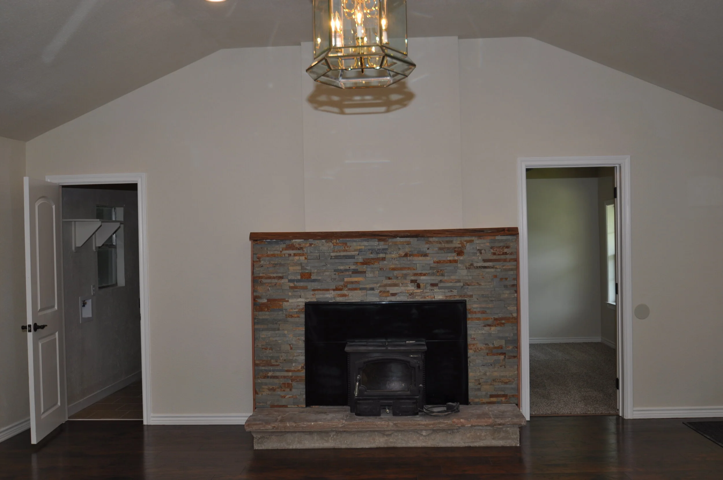 Open floor plan—completely renovated interior with a brand new construction master bedroom/bathroom addition with both beautiful soaking tub and separate tiled walk in shower. Raised ceiling in the living room with an authentic dry stack rock and wood burning stove. New kitchen with custom cabinets and granite counters. All new plumbing, completely new HVAC system, electrical, flooring, doors, trim, and paint. Tastefully designed with bronze plumbing and lighting fixtures, luxury vinyl plank floors throughout home. Large utility room with tiled floor and washer/dryer connections. The house sits on a ¼ acre flat lot with the adjacent ¼ acre lot, with sewer tap already installed, also available for your garage or shop (or build a new home).