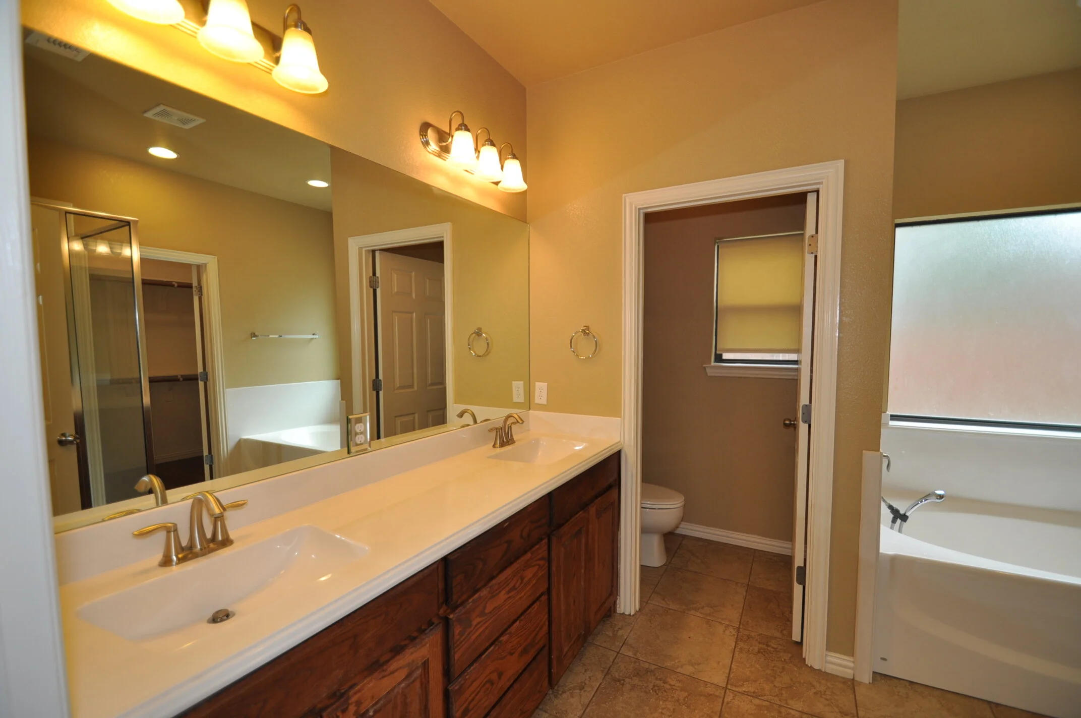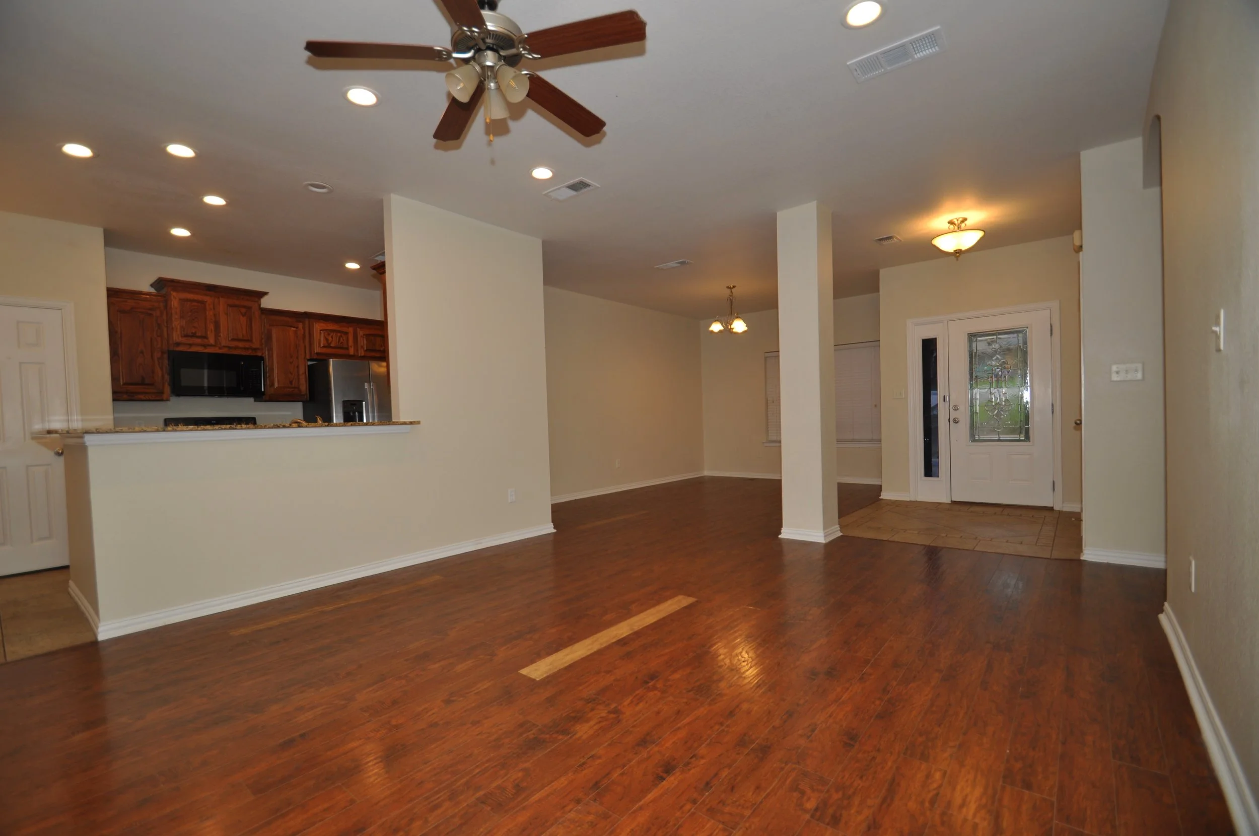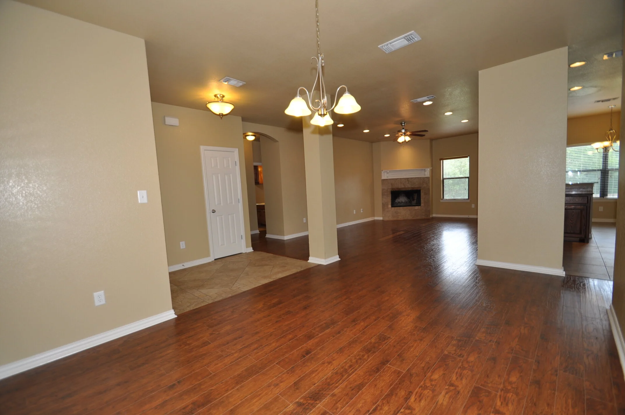 Located on a quiet cul-de-sac this open plan home is just outside of City limits with no HOA. Beautiful wood floors in much of the home. There is both a small ‘formal dining’ area and kitchen nook accessible from the kitchen which has granite counters and custom stained cabinets. The master bathroom has both marble tub and separate shower with marble enclosure and double vanity. Wood burning fireplace, 9ft ceilings, quality family home with a huge fenced back yard. (Note: The back fence is actually only half of the depth of the lot). The house was updated in 2023.