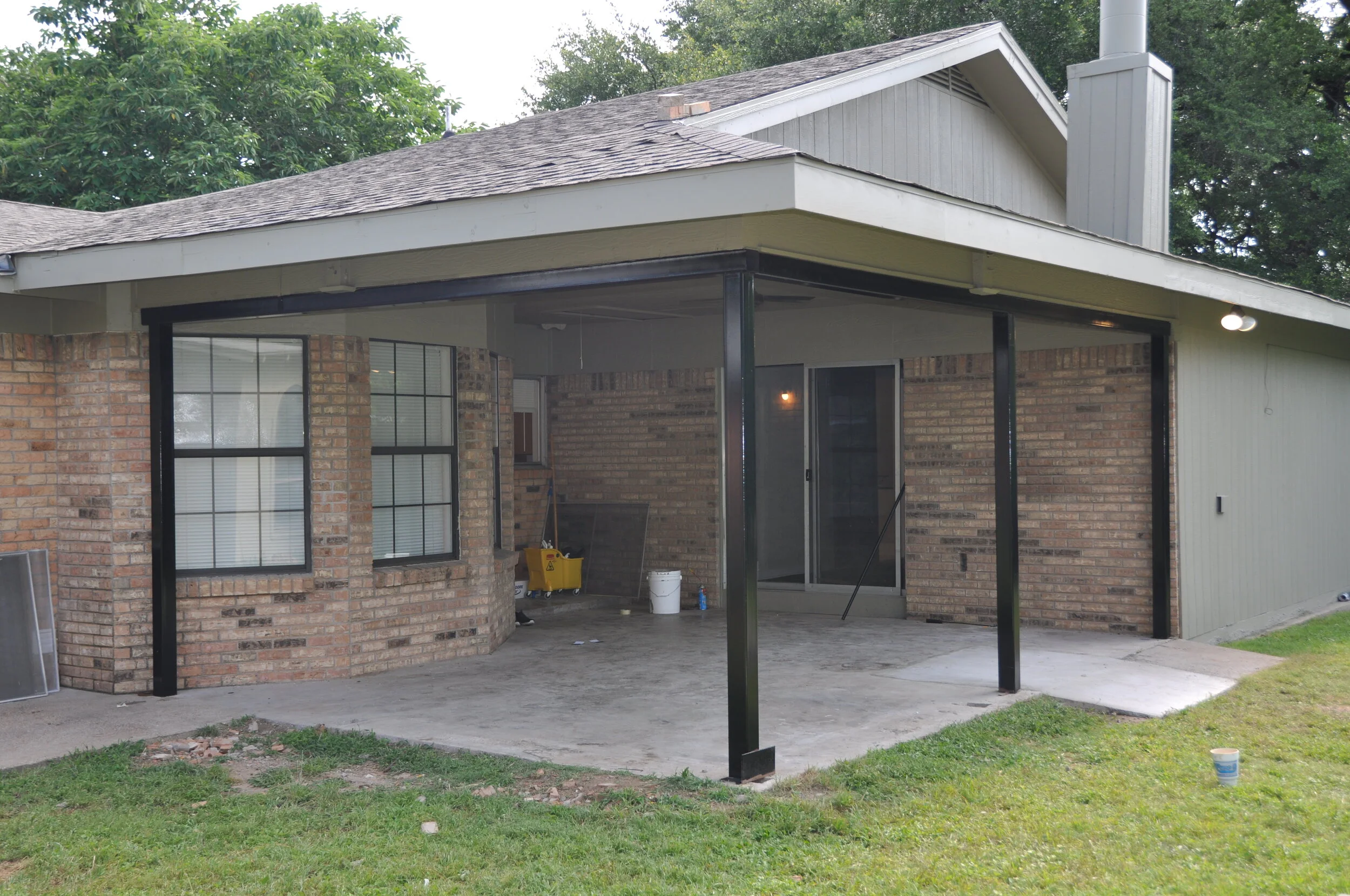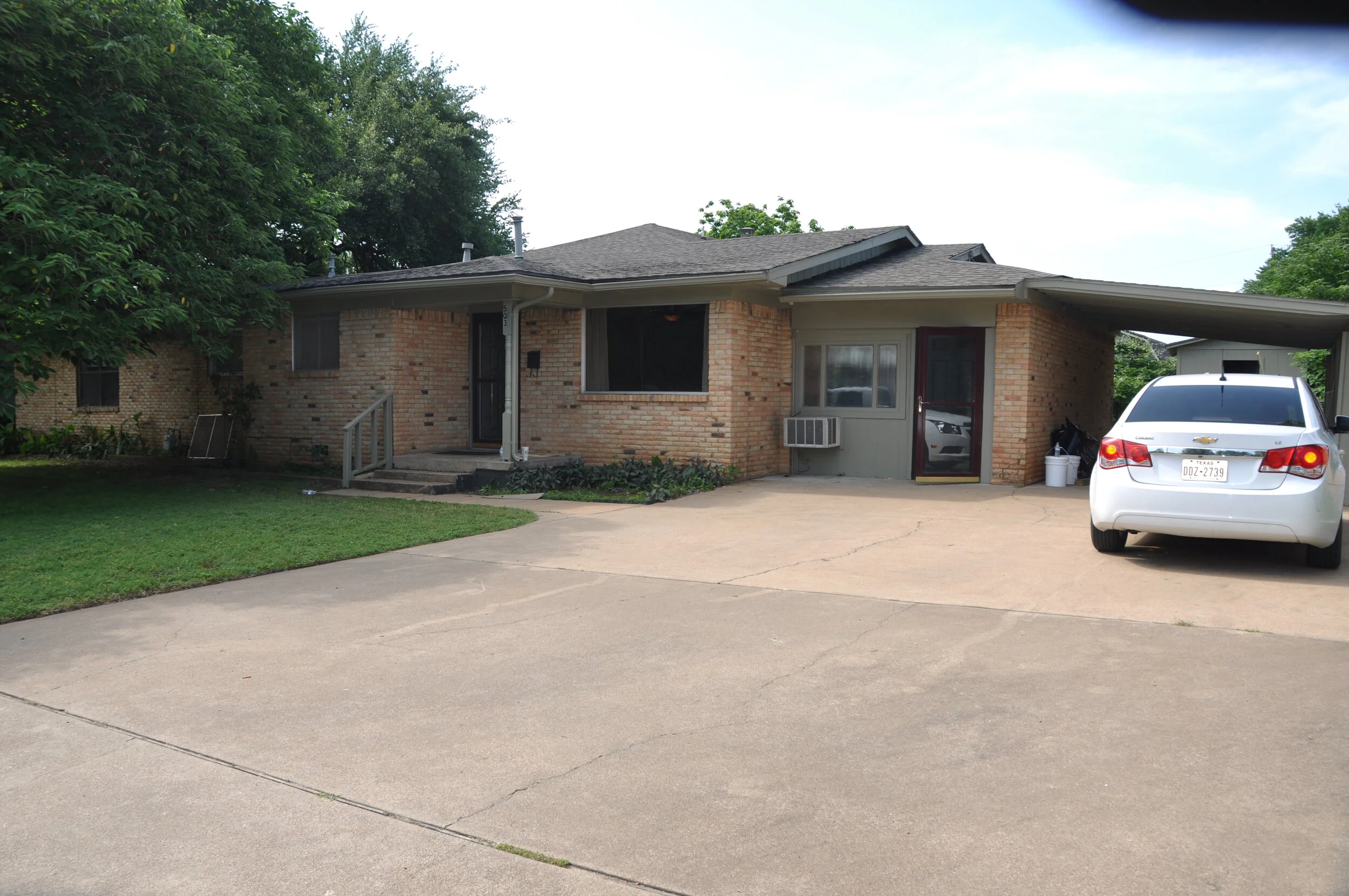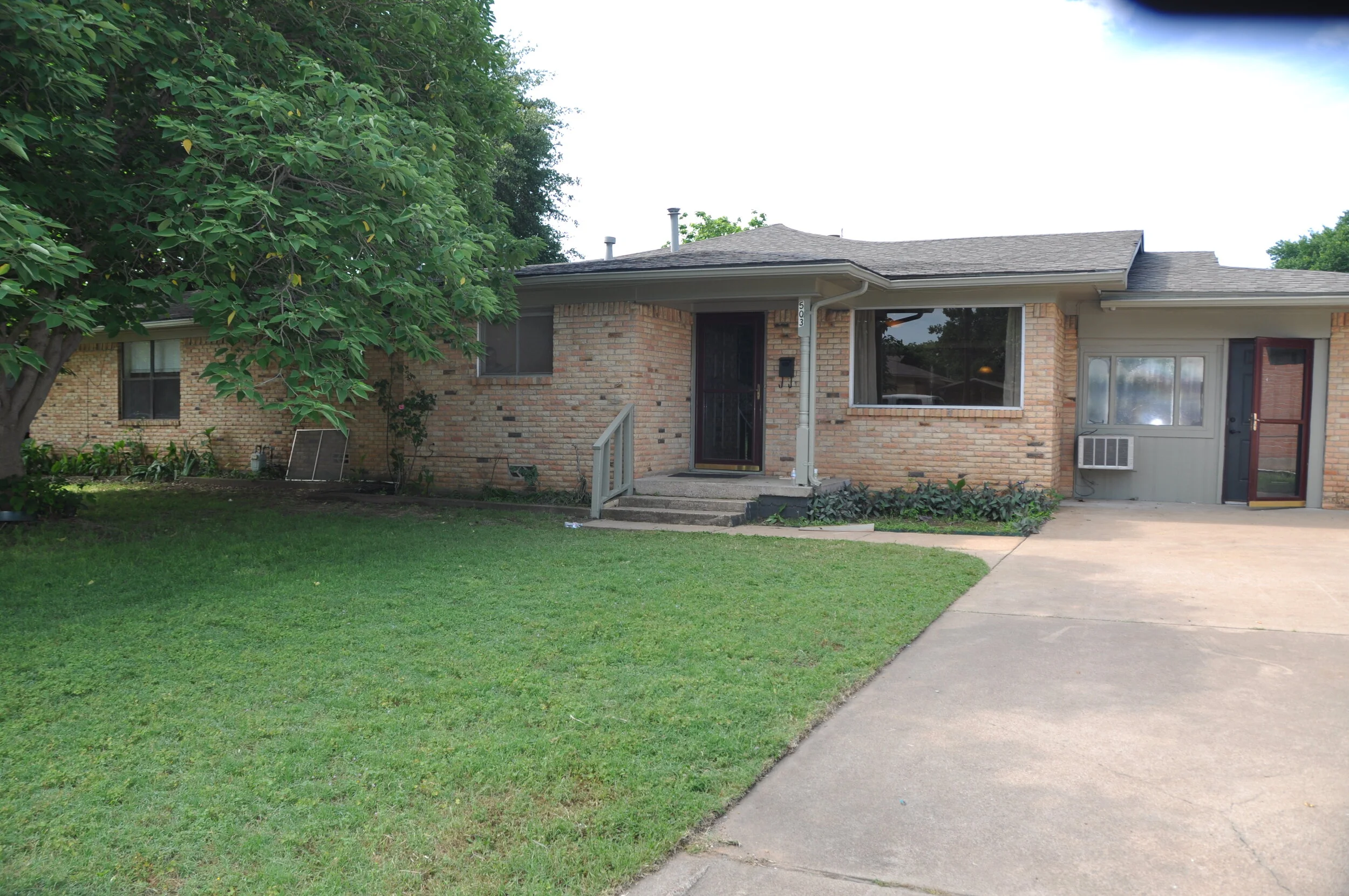 Bonus room, with access to drive, looking from the utility room (the window unit is a left over extra from the renovation, this room has central air ducting)